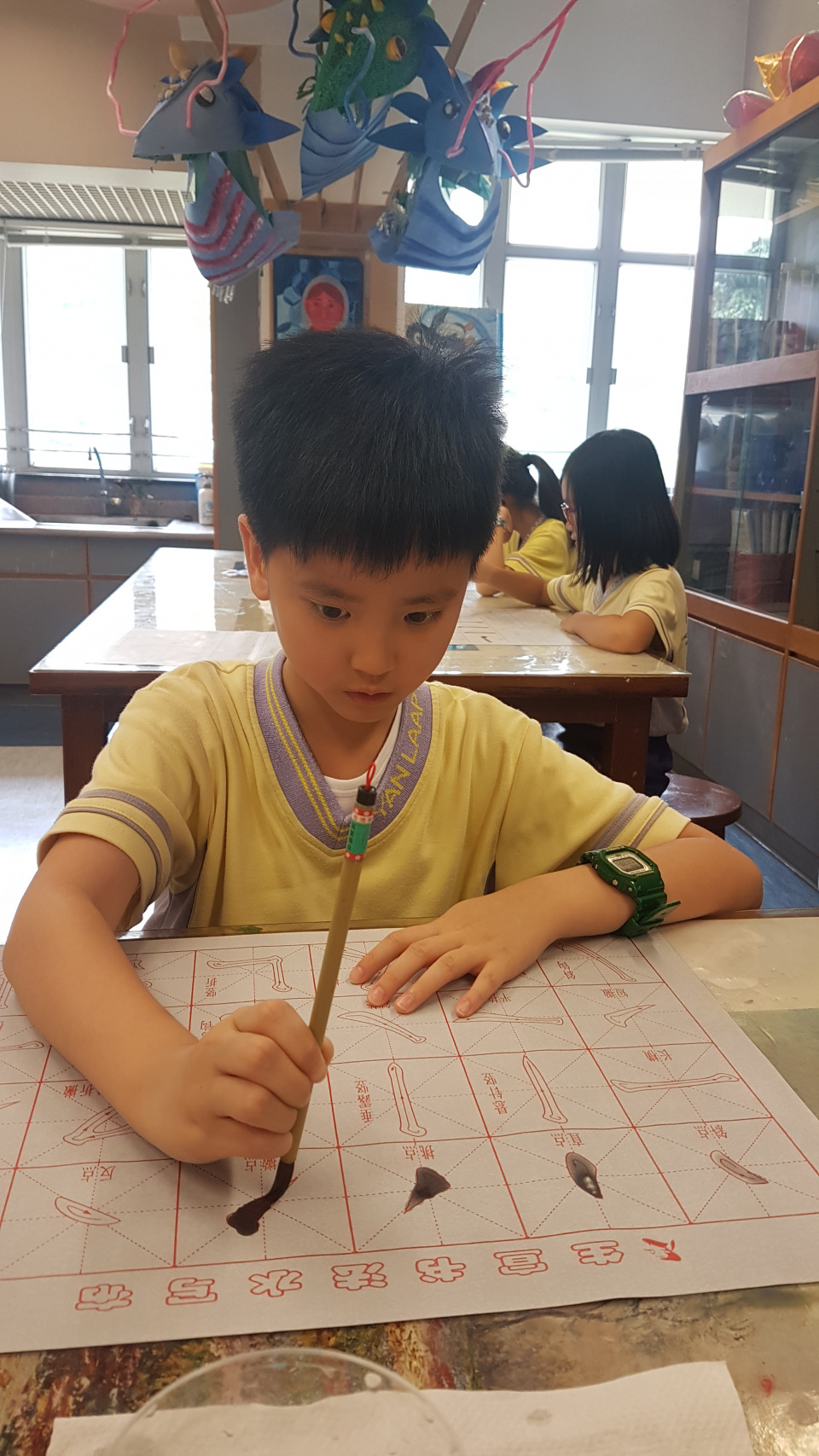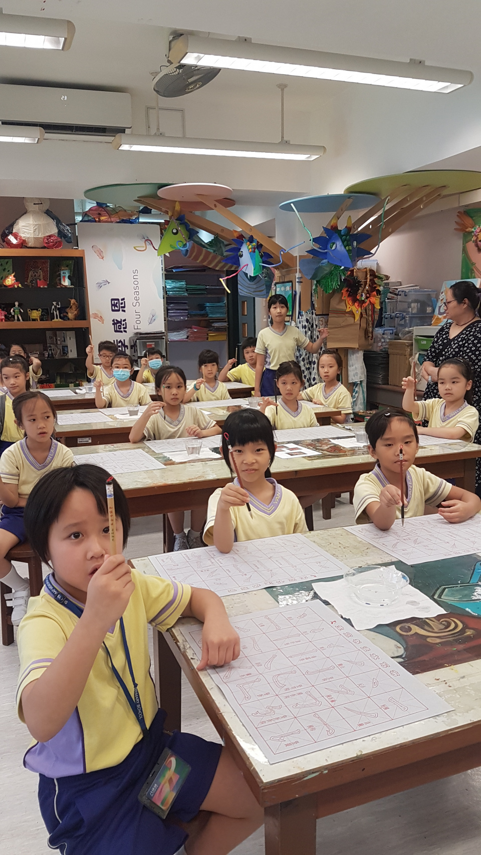 科組在試後為二年級同學準備了一節書法課,讓同學學習正確的書法坐姿及執筆方法,課堂中同學認真學習,為三年級學習描紅做好準備,同時亦感受寫書法的雅趣。