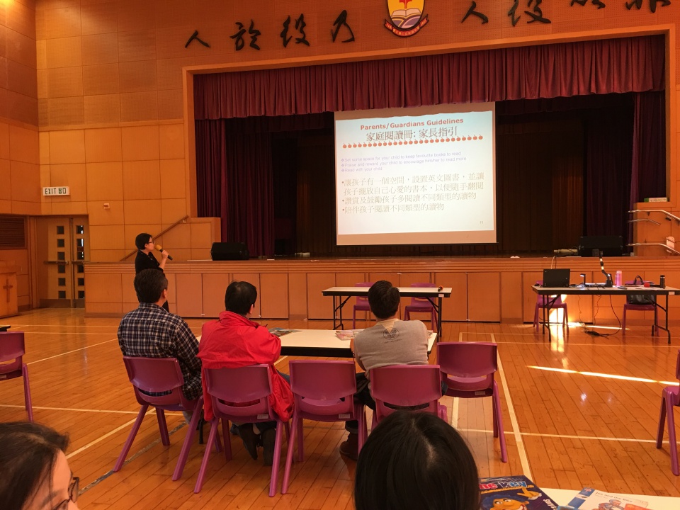 Parents from P.1 and P.2 were invited to join the workshop on how to facilitate the home reading programme with support from the advisory teacher and our NET Miss Rebecca.