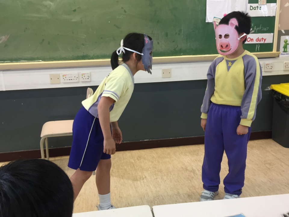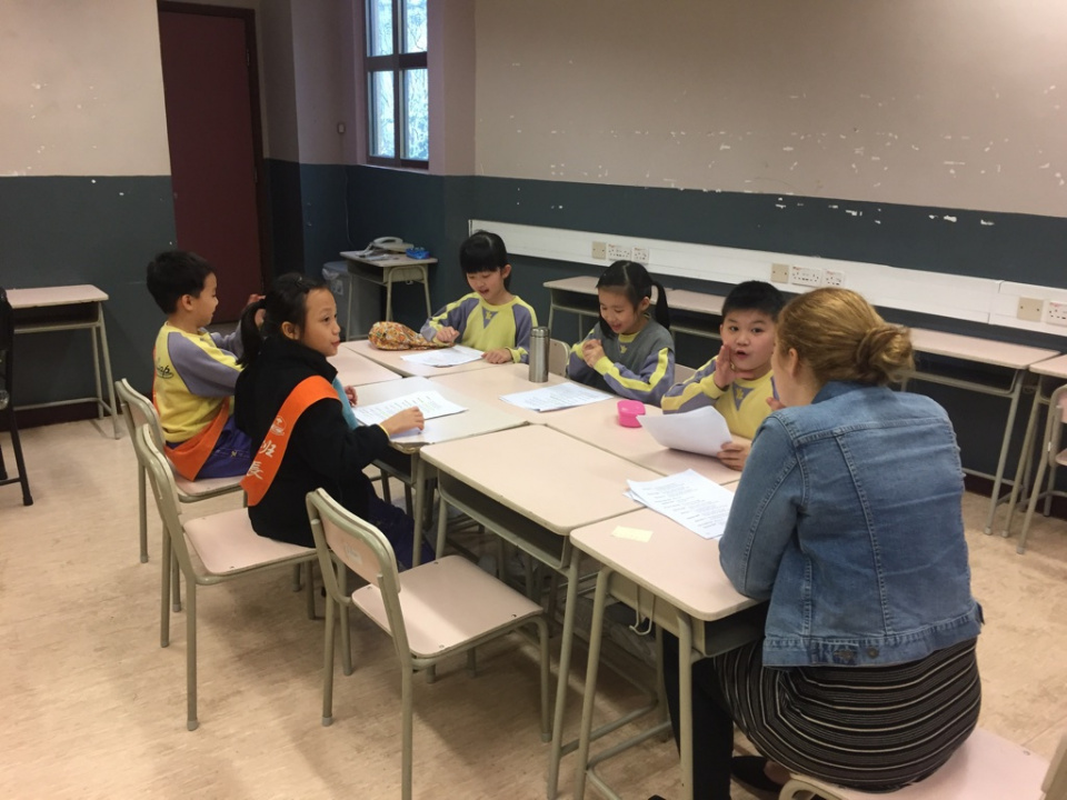 Miss Rebecca invited some P.2 students, who behaved well in her lesson, to join the Acting Class at recess.