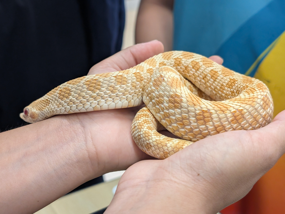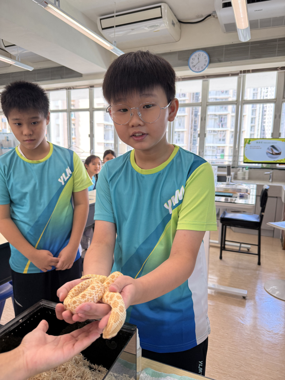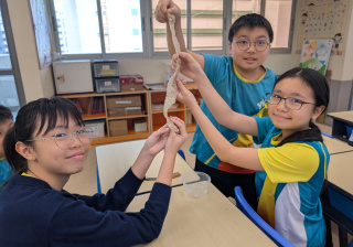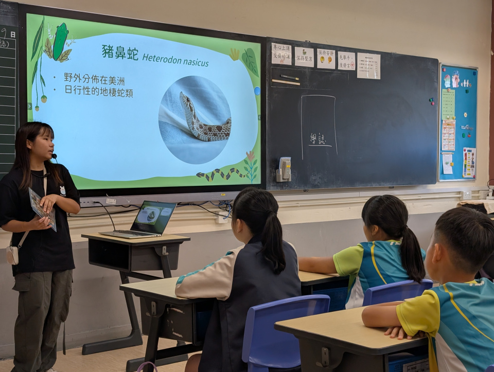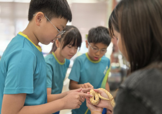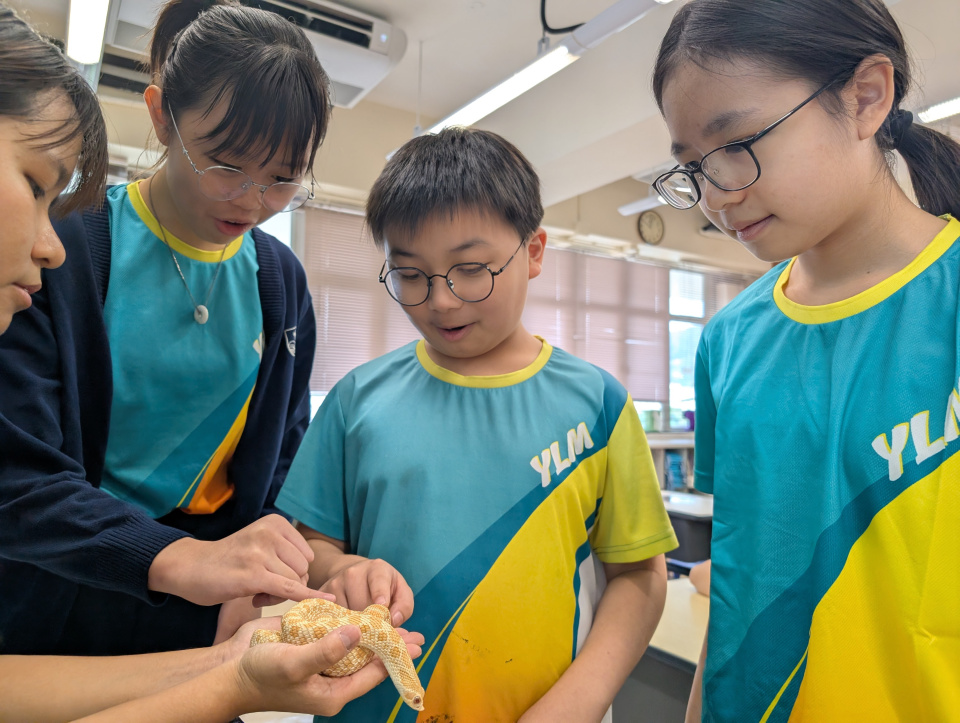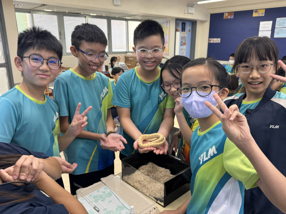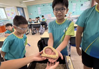 同學表現雀躍,主動抱蛇觀察!透過分組研習本地生態,將科學知識結合愛護動物的價值觀,實踐真正的體驗式學習。