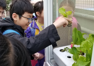四年級同學於10月尾進行水耕定植,經差不多何多月時間,同學的水耕蔬菜已有收成,但因怕受空氣污染的影響,所以收成後作肥料處理,不派發予同學進食。