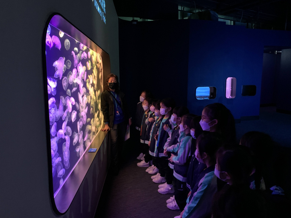 為了配合常識科生物單元,本校安排一年級到浩海立方進行導賞及體驗活動;學生除了可以近距離觀賞不同種類的水母外,亦可了解水母的成長與大自然的關係。當中學生亦可透過VR和AR體驗海洋世界,也可親手接觸海洋生物,度過了一個不一樣的學習天。