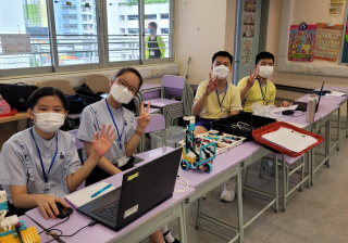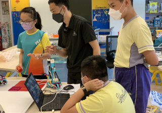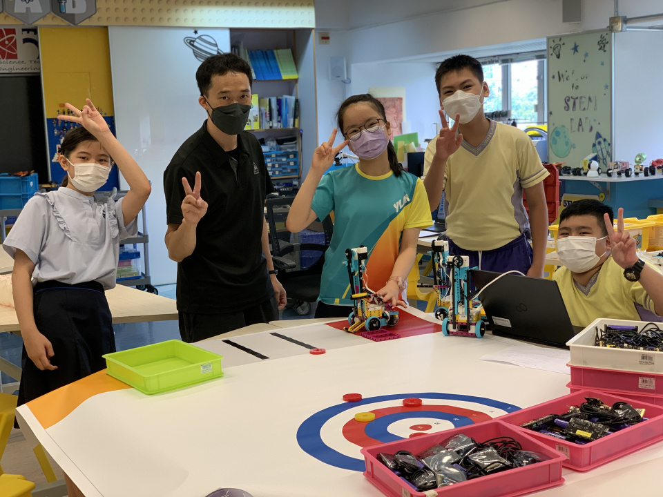 本校學生 6A 石嘉烯 江澤峰 5B 傅子盈 林詩澄 代表學校參加 聖公會冬季機械人奧運會中的冰壺比賽,同學透過組裝機械人,並自行編寫程式,讓機械人動完成冰壺比賽。