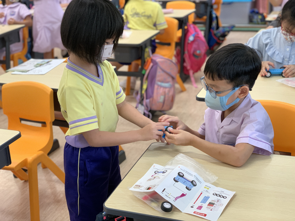 同學動手組裝小車,並利用磁力同性相距,異性相吸的科學原理推動磁力小車作競速比賽。