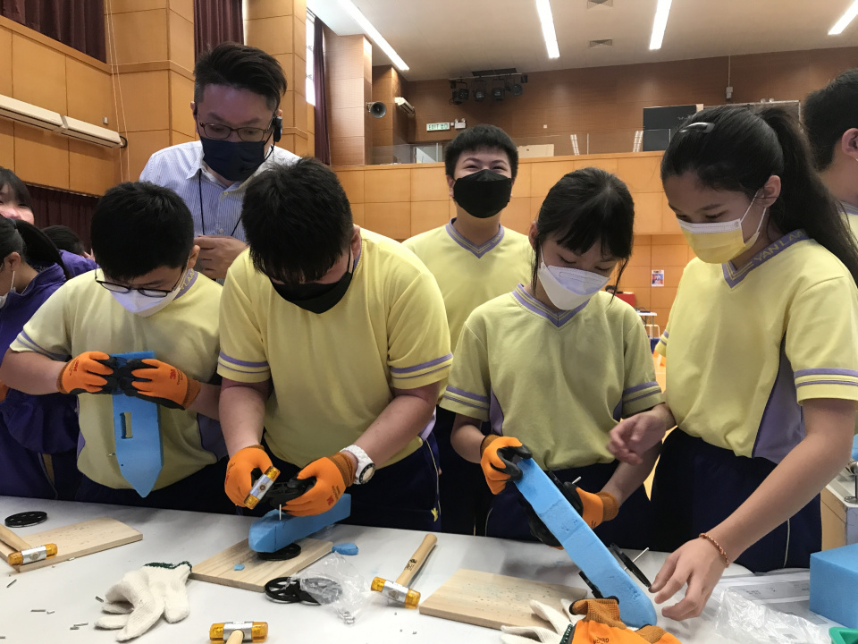 本校邀請專科教育機構到校,為小六學生安排火箭車活動,讓學生學習汽車工程、風洞測試等知識,並讓學生動手設計、切割和打磨車身,最後組裝自已獨一無二的火箭車。