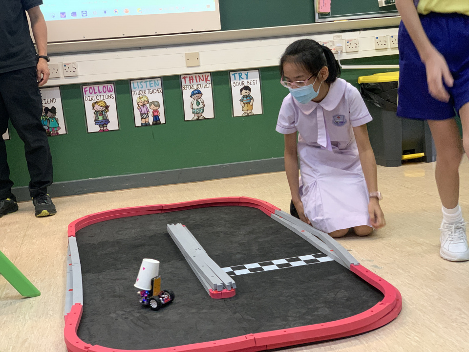 同學動手組裝LADYBIRD 機械人,運用MICRO:BIT編程,讓機械人能自動避開障礙物,並完成迷宮賽道。