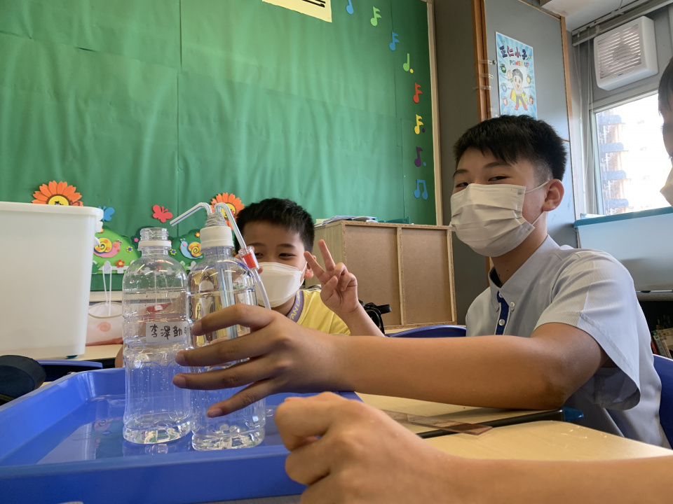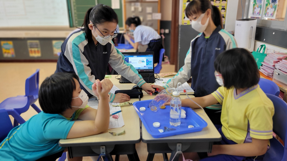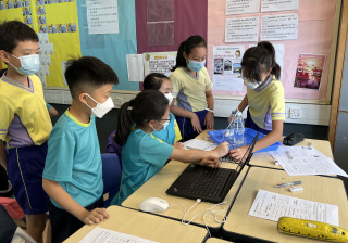 同學應用閉合電路設計免觸式消毒裝置,再選取合適的控制開關選項(Micro:bit程式碼),動手組裝免觸式消毒裝置。