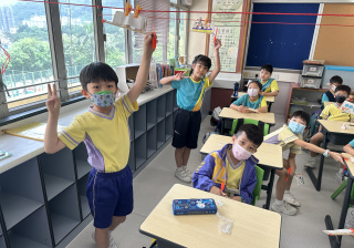三年級學生製作簡單的橡筋飛船,並親身利用課室中的線道進行不同的測試,了解如何利用橡皮蓄力,並帶動螺旋漿轉動,從而令飛船移動。過程中,學生也要自行探究螺旋漿轉動方向、橡皮數量如何影響飛船移動方向,並完成指定的滑行任務。
