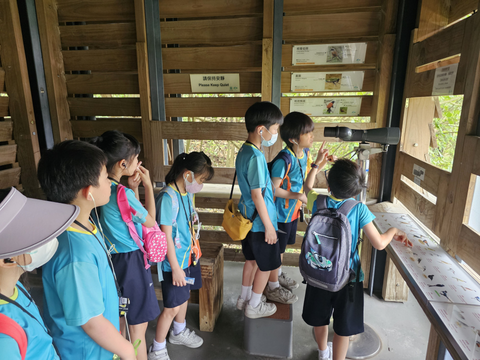 為了配合常識科植物單元,本校安排三年級參觀香港濕地公園,讓學生親身遊歷濕地,當天同學除了看到小灣鱷「貝貝」外,也走進了不同的觀鳥屋,透過望遠鏡觀賞侯鳥,亦到了紅樹林浮橋尋找朝潮蟹及彈塗魚,沿途亦發現不少有趣的植物如露兜樹、荷花、爬牆虎等等,令同學過了一個豐富的生態之旅。