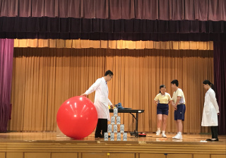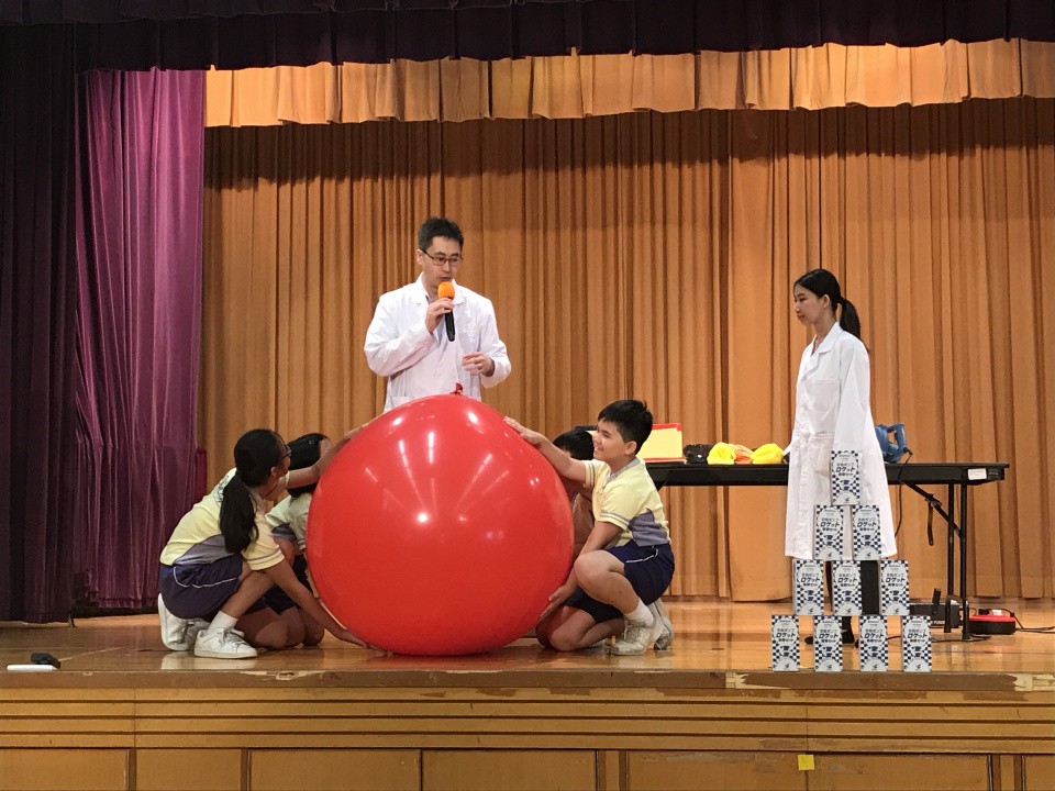 科學劇場透過精彩的科學實驗表演,讓同學了解空氣的特性。