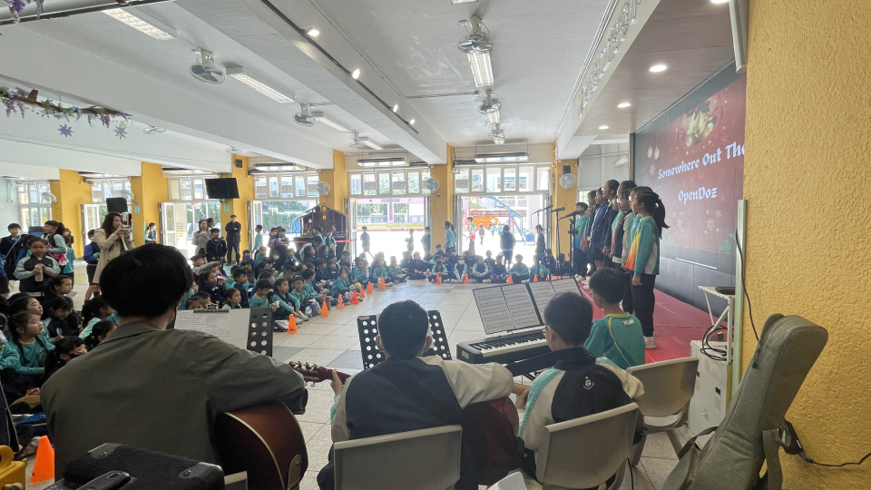 聖誕節快到了!音樂組請來了Opendoz及小號小組的同學於9-12-2025第三個小息在有蓋操場為全校同學表演聖誕樂曲,頌揚耶穌降生的好消息,觀眾同學都十分興奮,還一起跟着唱呢!