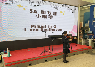 又到與眾同樂的時候了!音樂組請來了4位音樂表現出色的同學於6-2-2026第三個小息在有蓋操場為全校同學表演樂曲,觀眾同學都來圍觀欣賞,為演奏的同學歡呼呢!