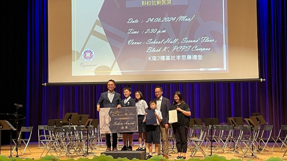 弦樂團於2024年6月24日到培正小學參加「培正弦樂匯演」, 是次比賽同學都付出時間認真練習,並得到銀獎呢!學生在比賽中除了學習實體比賽的經驗,增加學生面對群眾表演機會,提升自信心,更能與其他隊伍互相觀摩,及實踐音樂課時所學的觀賞禮儀,有助其音樂造詣的發展。