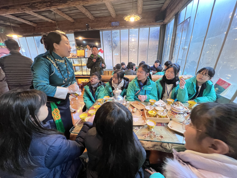 師生及家長登上四川達古冰川海拔 4860 米的「地球第三極」,跟隨專家觀察冰川紋理,學習冰川消融對氣候的影響,並參與保育行動,樹立守護地球的責任意識。其後走進羊茸哈德藏寨,感受藏族文化魅力;探訪熊貓基地,了解國寶生活習性與保護現狀。旅程中,本校與德陽天立學校締結為姊妹校,雙方學生互贈禮物、分享學習生活,並以香港非遺為切入點,搭建起兩地文化交流的橋樑