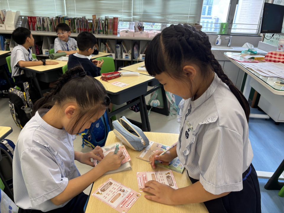 為了宣揚精神健康的重要性,本校積極參與「荃葵青區精神健康月」活動,於早會進行「靜觀呼吸練習」。同學們可透過聆聽「靜觀呼吸練習」廣播,將注意力聚焦一呼一吸中,集中覺察自己的身心狀態。此外,同學們能透過心情日記記錄自己的心情,學習跟他人分享自己的感受。