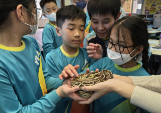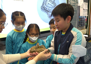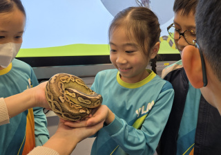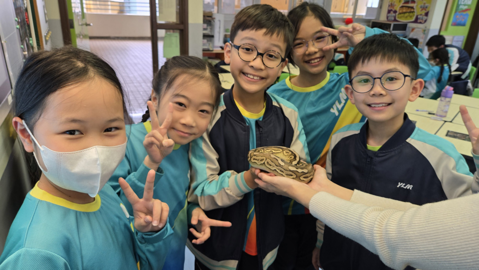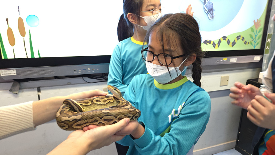 為配合四年級科學科生物世界的學習單元,本校特安排小樹林教育機構到校,為學生進行兩棲爬行全接觸的學習活動,活動除了有專業人士講解本地兩棲類及爬行類的生態外,亦讓學生可親身接觸「蟒蛇」這種爬行類動物,加深對動物的了解,從而理解動物的身體特徵。