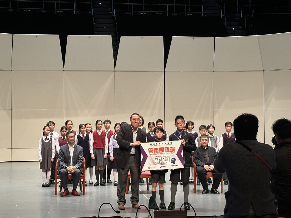 管樂團同學於16-12-2025到伊利沙伯體育館參加一年一度「2025香港青年音樂匯演」,初次挑戰中級組,並獲得銀獎呢!「香港青年音樂匯演」為各學校的中樂團、弦樂團、交響樂團及管樂團提供互相切磋交流的機會,由專業音樂家獲邀擔任評判,對參加隊伍的表現提供寶貴意見。