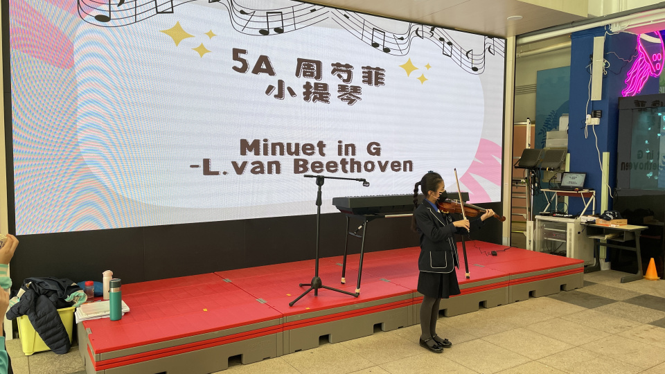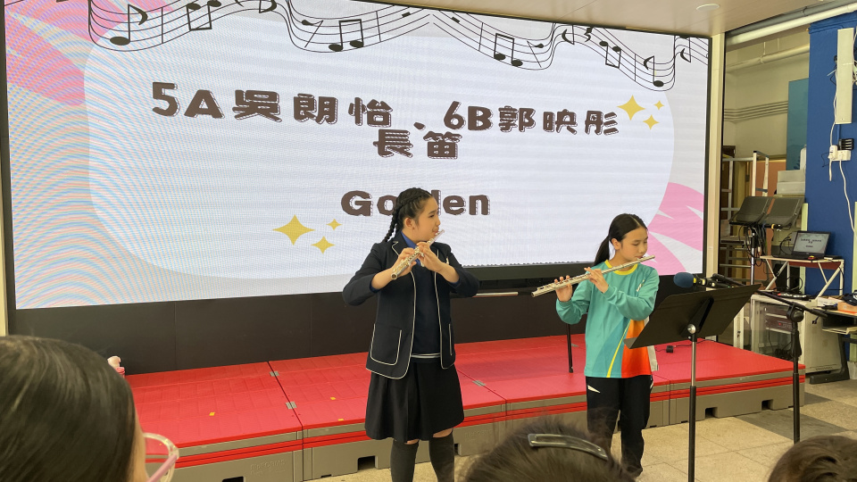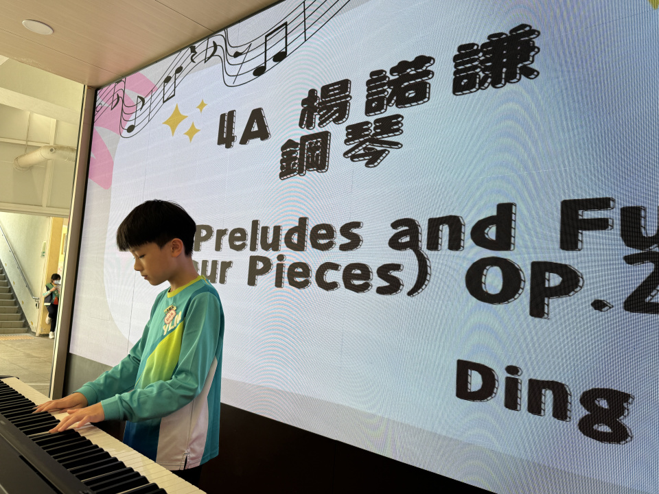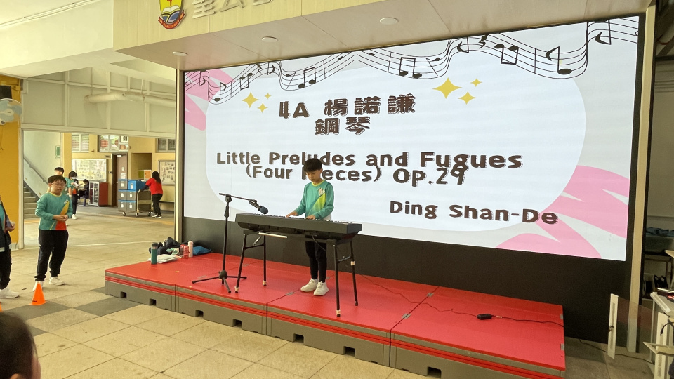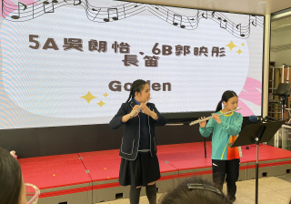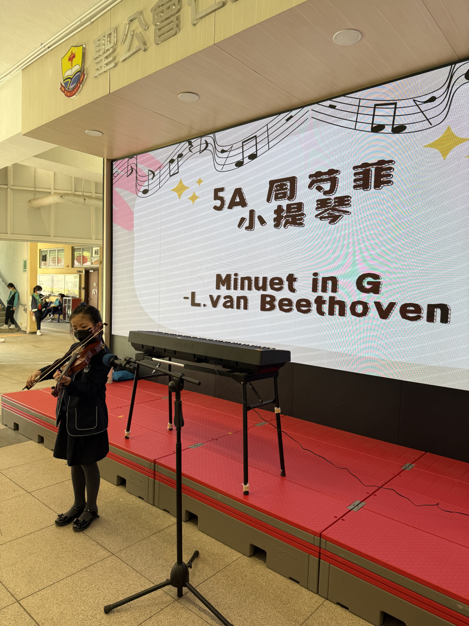 又到與眾同樂的時候了!音樂組請來了4位音樂表現出色的同學於6-2-2026第三個小息在有蓋操場為全校同學表演樂曲,觀眾同學都來圍觀欣賞,為演奏的同學歡呼呢!